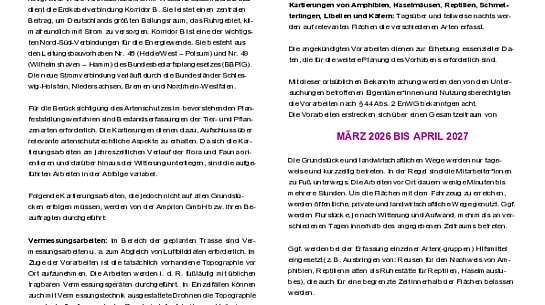 Amprion - Ankündigung von Kartierungsarbeiten für die Trassenplanung im Bereich der Stadt Meldorf Erdkabelverbindung Korridor B