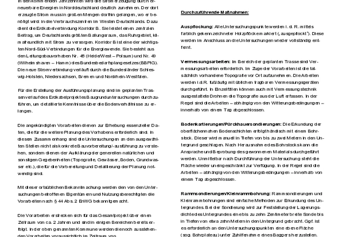Bekanntmachung der TenneT TSO GmbH - Ankündigung von Kartierungsarbeiten für das Projekt NordOstLink