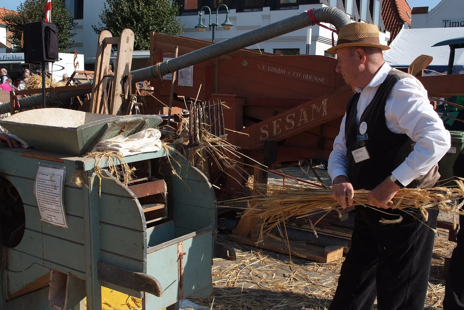 Immer dabei sind Aussteller, die sich mit dem alten Handwerk beschäftigen, wie z.B. ein Schmied, der mit seiner Esse richtig einheizt und zeigt, wie man scharfe Klingen herstellt. Hier dürfen auch die Kinder mal das Feuer anfachen. Oder man versucht sich am Schleifstein, um einen Bernstein in Form zu bringen. Die Schleswig-Olderuper Dreschgemeinschaft ist fast in jedem Jahr dabei. Sie reist mit historischen Geräten an, um unter anderem zu präsentieren, wie bis Anfang des 20. Jahrhunderts Korn gedroschen wurde. Auch die Treckerbahn der Süderholmer Torfbäcker gehört schon fast zum Inventar. Hiermit kann man eine kleine Runde durch Meldorfs Innenstadt fahren. Oder es gibt Torfbäcker mit einer imposanten Wasserpumpe, die mit einem Oldtimer-Traktor betrieben wird, dabei sein.