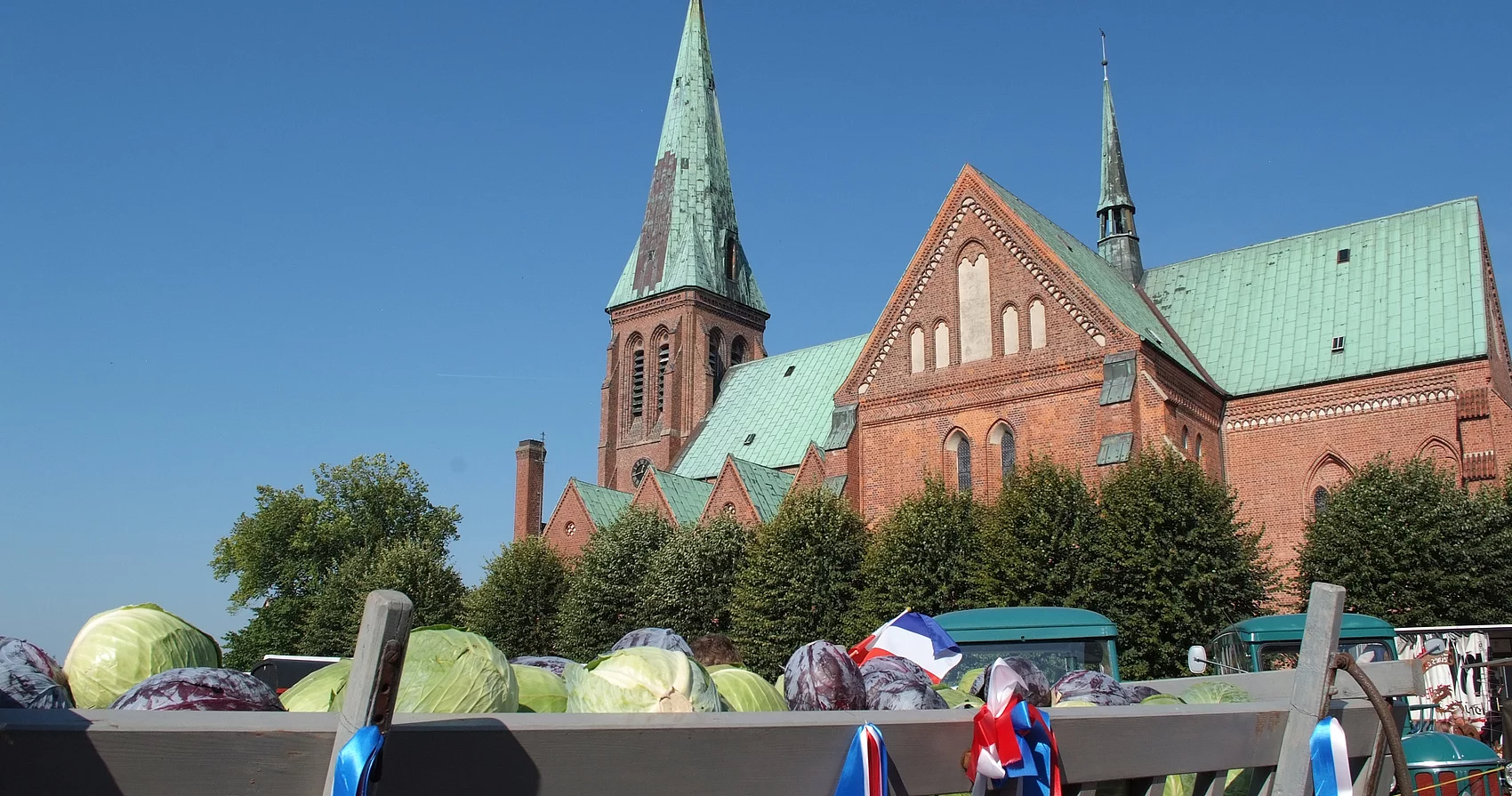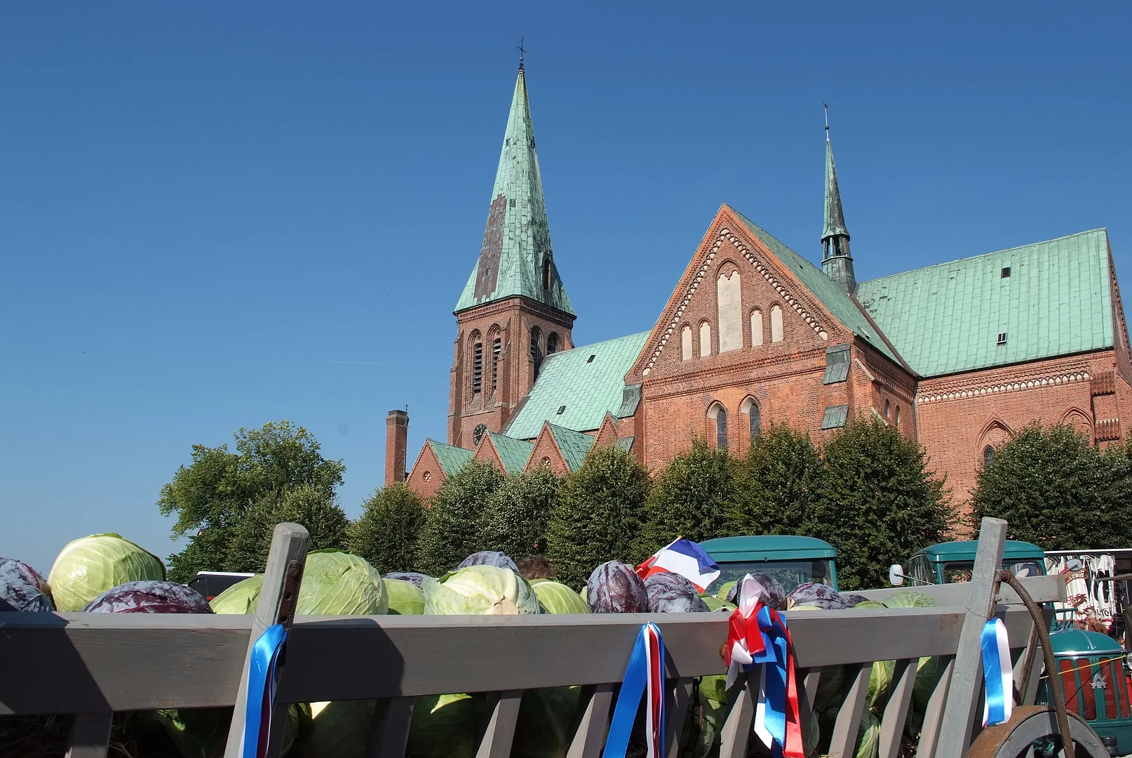 Der Dom der Dithmarscher, die Sankt Johannes-Kirche, ist nicht zu übersehen, wenn man sich Meldorf nähert. Und genau hier, auf dem Meldorfer Marktplatz und auch in der Innenstadt findet immer im September das Meldorfer Kohlvergnügen statt. Dann stehen familien- und kinderfreundliche Angebote im Mittelpunkt. Die Gastronomen und Bäcker haben sich wieder einige Kreationen einfallen lassen um das Gemüse Kohl abwechslungsreich in Szene zu setzten. Und auch die süßen Sachen, wie zum Beispiel das Kohleis, fehlen hier nicht. Wer sich hier zum Schlemmen niederlässt, sitzt mit Blick auf den Dom „in der ersten Reihe“. Daneben erfahren die Besucher viel über altes und neues Handwerk, wobei nicht nur die Kinder einiges selber ausprobieren können.