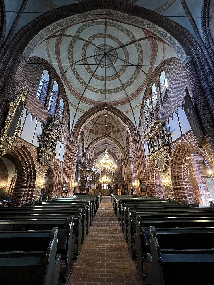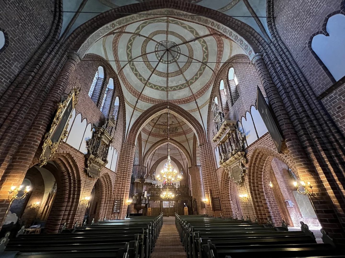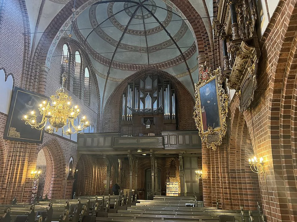 Die zweite Tür öffnet sich. Der Besucher steht unter der Orgelempore und die Augen schweifen in den feierlichen Innenraum. Das warme, rötliche Schimmern des Backsteins, die schlichte Ausschmückung, die golden glänzenden Kronleuchter - und dann dieser warme Geruch nach altem Stein, altem Holz, ein wenig nach Staub. So umfängt der Dom seine Besucher, heißt sie willkommen in seiner farbgefüllten Ruhe.