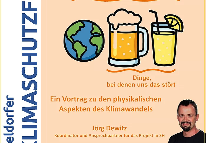 Klimawandel verstehen und handeln. Dinge, bei denen uns das stört. Ein Vortrag zu den physikalischen Aspekten des Klimawandels. Koordinator und Ansprechpartner für das Projekt in SH: Jörg Dewitz