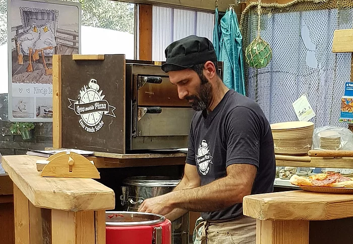 Auch im Sommer 2026 gibt es echte italienische Pizza am Badestrand in Nordermeldorf. Leo kommt mit seinem mobilen Pizzastand ist am DEICHHAUS und zaubert für alle traditionelle italienische Pizza aus dem Steinofen