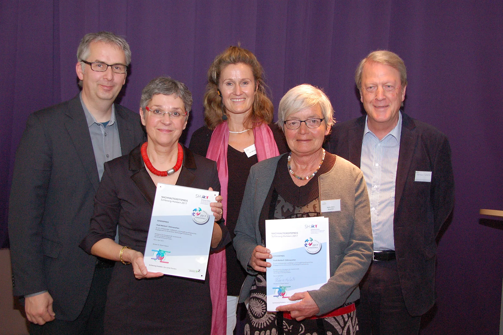 Bürgermeisterin Anke Cornelius-Heide und die Bürgervorsteherin Heike Ehlers nahmen die Auszeichnung in Neumünster im Alten Stahlwerk von Staatssekretärin Dr. Silke Schneider entgegen. Die Anerkennung, die mit dieser Auszeichnung verbunden ist, gibt Cornelius-Heide gleich weiter an die Basis: „Ich freue mich sehr über diesen Preis, weil damit das Engagement all der Bürger und Bürgerinnen zum Thema Nachhaltigkeit eine Wertschätzung erfährt. Die Preisverleihung zeigt mir, dass wir auf dem richtigen Weg sind und sollte uns motivieren weiterzumachen.”